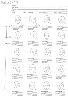 Of course this only gives me very few measurements on one plane. If I had the real person in front of me I would take several measurements for the sculpture. On the face many measurements begin with the crock of the ear, for example from the crook of the ear to the chin, the crook of the ear to the nose the crook of the ear to the forehead and there are others like the width of the face. (Below is an example of my measurement chart for portrait sculpture.)