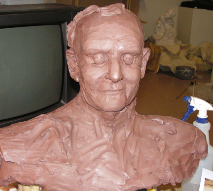 Another project that I have in my studio right now is of Professor Richard Hathaway. He was a teacher at Vermont College Union institute, and Goddard College. He passed away not long ago. I am working on a sculpture of him to be placed outside the green on the Vermont College Campus. The keeper of the Dick Hathaway sculpture is officially the T.W. Wood Gallery. They are also helping to raise some of the money that is needed for the casting of this sculpture.