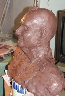There are two sizes of portrait busts just below the shoulders and more chest. More chest will cost more money in bronze. I can not seem to get away from it though. My subject reminds me a lot of the B. B. King sculpture and sitting. They both have wide shoulders. To cut my subject just below the shoulders seems to decrease who he is. Like B’ they both seem to have that emotional stature. I have decided to continue with a larger bronze and see what my client thinks. I can always show the client,” we can cut it here.” I’ll post more later.
