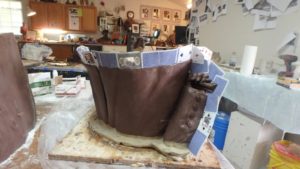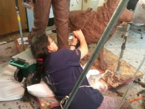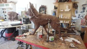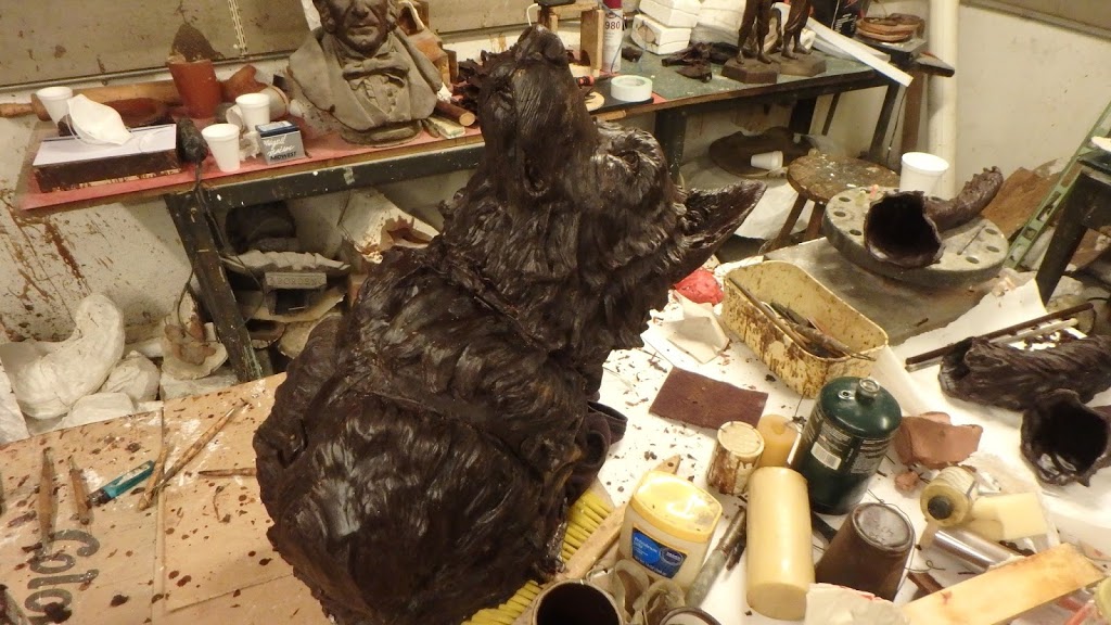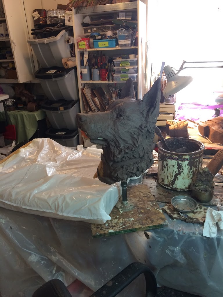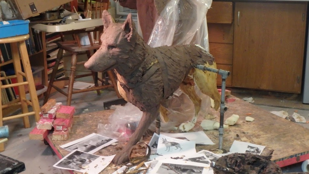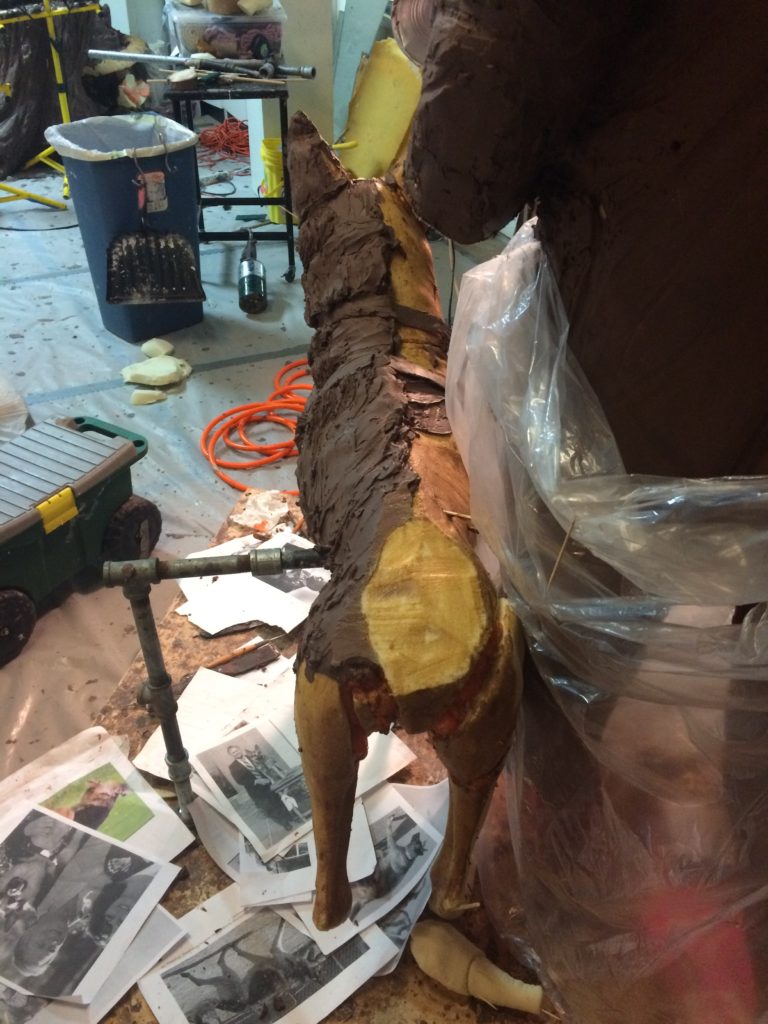 the dog, adding clay, carving foam, moving