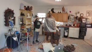 I only take moments to see these creative, inspirational bronze apparitions as we must quickly get to work. I arrive at 10 and we estimate this will take about 2 hours. I’m happy to see strapping young men and art handlers of Unified Fine Arts. They will come in handy when trying to lift out a 350 lb sculpture.