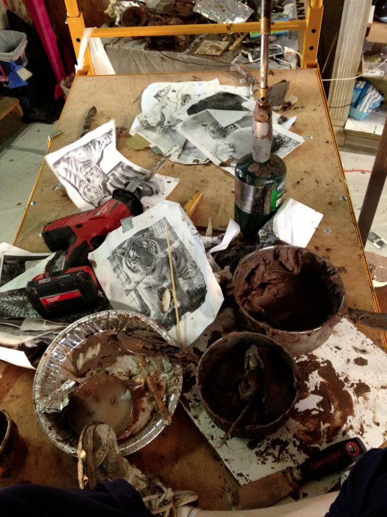 to get the feeling back in my fingers. Here is the kicker-after we raised the tiger, I didn’t like what we sculpted upside down and did it all over again!