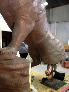 Had this been a table top sculpture I might have thought to play with the arm and step back, but stepping back when you are that far up in the air is not that easy. And moving an arm, that is made with foam, but has a metal armature and lots of clay on it, is not that easy.