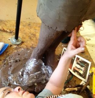 I spend a good deal of my time, taking off clay and putting it on. Because I have the foam armature I am also digging out foam, covering it with wax, then clay and smoothing.