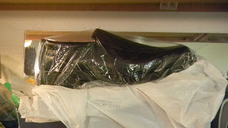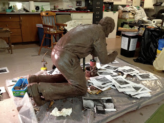 Continuing our work on the Praying Man for Dallas Baptist University. You can find their project blog on Blogspot. I love reference. It is important for me to have something to look at. This shoe reference came from Sears. Yes, I bought shoes so that we could look at their shape.