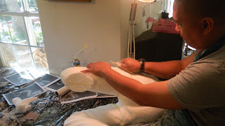 Today is my birthday and as a gift the foam has arrived to start sculpting on the project. There is still much to be done with the foam. We have to put all of the foam pieces together, shave, and sand down what I don’t want, and cover the foam pieces with wax.