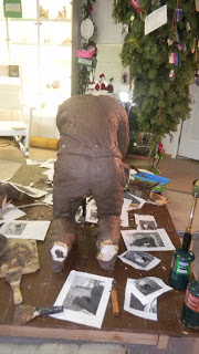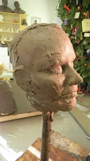 Once again ,we move the praying man higher. This saves me from having to roll around on the studio floor. The Christmas holiday is upon us and my interns have been very accommodating God bless them all. I do love my alone time with the sculpture. It is the time where we get to know each other better. To meet this deadline I’m averaging 14 hour days. I stagger the interns but am thankful for all of the time they give me when they could be with their families. Thanks for stopping by to visit the studio, be sure to check your shoes when you leave, you don’t want to track any of this clay home and onto your carpets.