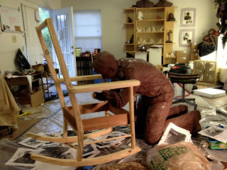 I realized some things after the man was added to the rocker• Though I feared the arms of the chair would distract from the sculpture, once I placed the man, I realized they cradled him.