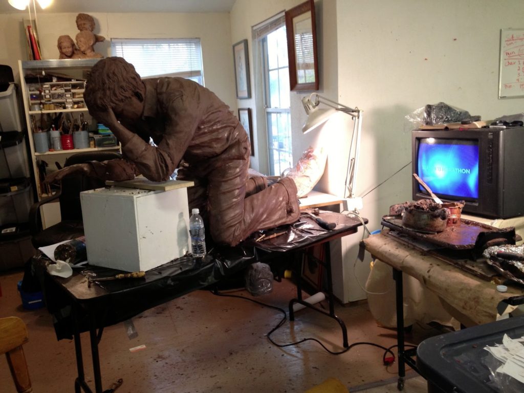 Gentlemen,Thank you for this opportunity to work on this project for Dallas Baptist University. This was the crunch time. It was essential to get this sculpted as quickly as possible so that the sculpture could go into the foundry process. We had a dedicated team working on the job. We had interns from two colleges and one high school student along and three assistant sculptors.
